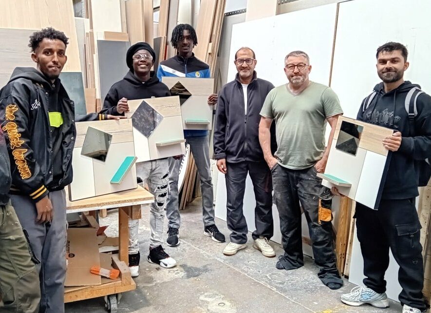 Nous créons du mobilier à partir de chutes de matière pour financer des projets d’insertion. Ouvert à tous les partenaires, sans prescription. Design, solidarité et impact au cœur de notre démarche.